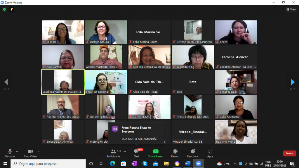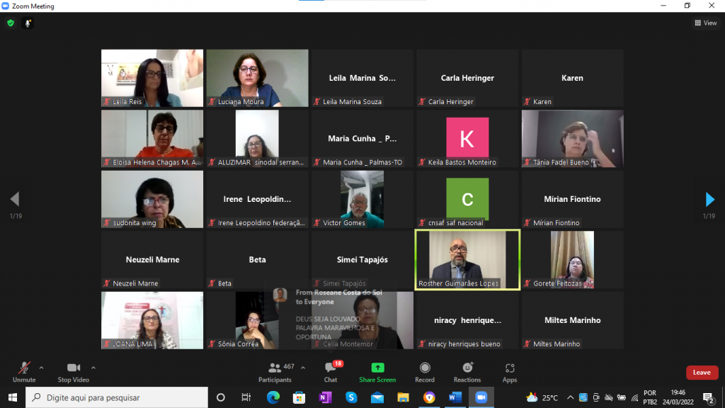 Alguns momentos do Culto de Abertura “XIX Congresso Nacional da CNSAFs , pelo aplicativo ZOOM :