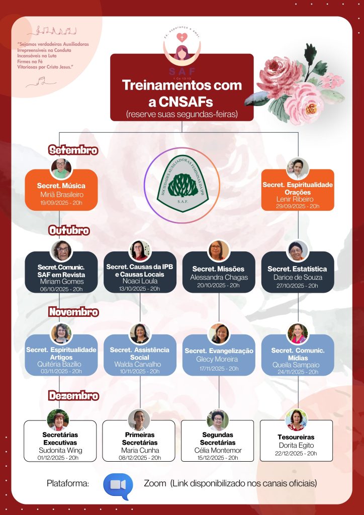 Nesta oportunidade, rogamos as bênçãos do Senhor e Salvador Jesus Cristo a todos os membros da Diretoria e Secretarias da CNSAFs, que o Senhor nos ajude, nos instrua, nos dê sabedoria e nos conceda a alegria de expressamos o nosso amor e adoração através do serviço. Que Ele receba e aperfeiçoe aquilo que ficou deficiente.